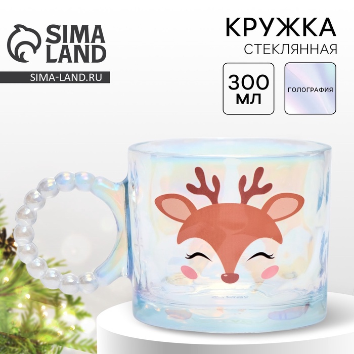 Новогодняя стеклянная кружка с формовой ручкой и голографией — идеальный выбор для новогодних праздников. Объём 300 мл и необычный дизайн кружки делают эту кружку прекрасным подарком для ваших друзей и близких.