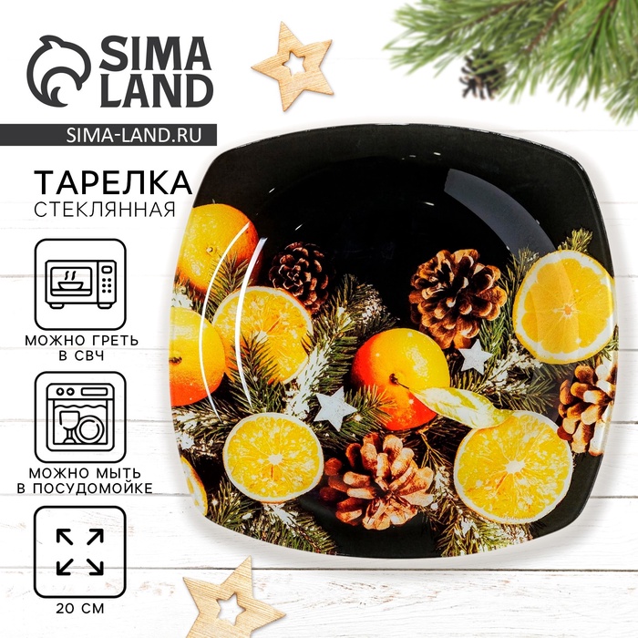 Новогодняя плоская тарелка размером 20 см, которая изготовлена из высококачественного и прочного стекла - это идеальное решение для подарка близким или самому себе!