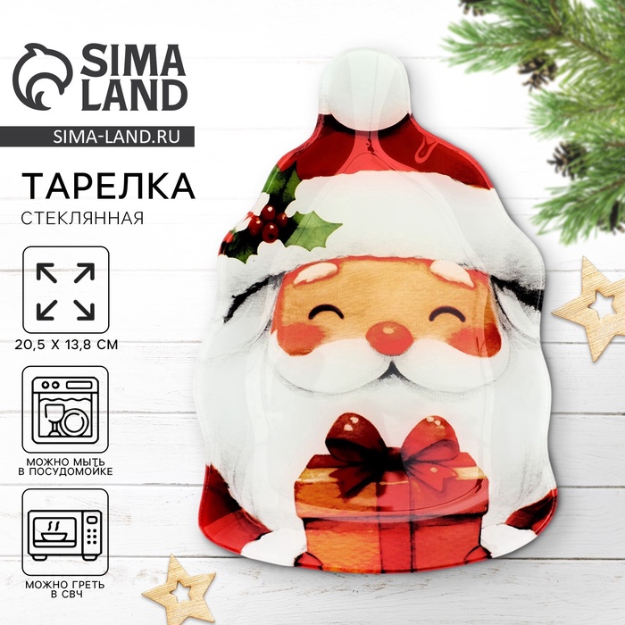 Тарелка новогодняя плоская «Дедушка Мороз», 13.8×20.5 см