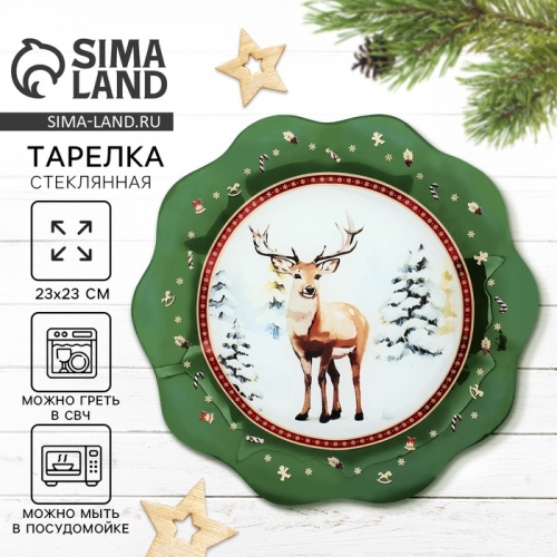 Новогодняя стеклянная тарелка диаметром 20 см — идеальный выбор для сервировки стола.