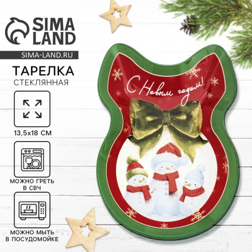 Новогодняя стеклянная тарелка в форме банта размером 13,5 x 18 см — это стильное и функциональное украшение для вашего праздничного стола.