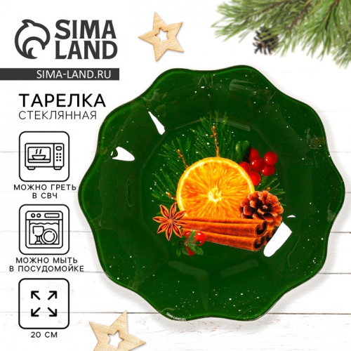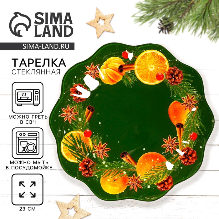 Новогодняя стеклянная тарелка размером 23 см — идеальный выбор для сервировки стола.