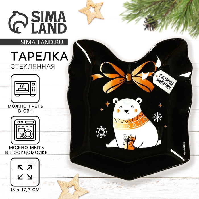 Новогодняя стеклянная тарелка в форме подарка — идеальный выбор для сервировки стола.