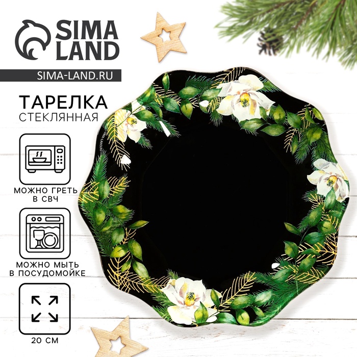 Новогодняя стеклянная тарелка размером 20 см — идеальный выбор для сервировки стола.