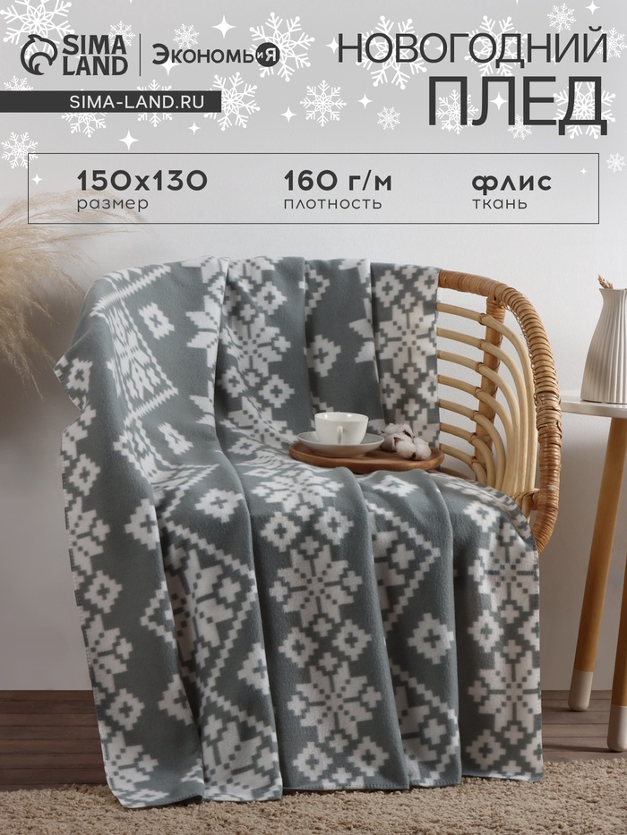 * Зимняя тематика добавляет пледу особое очарование, создавая атмосферу праздника.