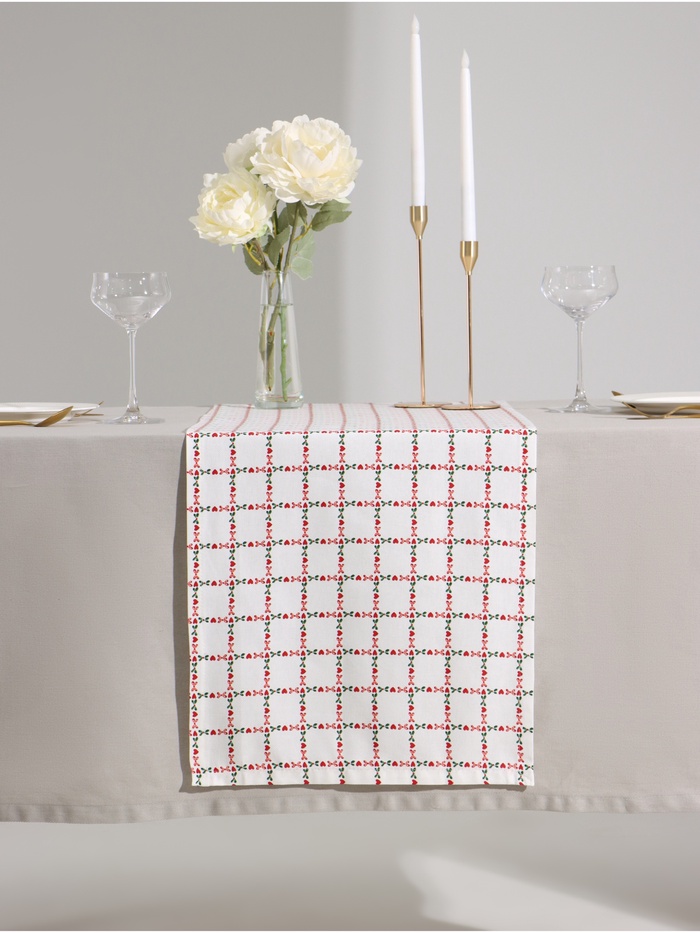Дорожка на стол Этель Flower Cage 40×149 см, 100% хлопок, рогожка 186 г/м², белая
