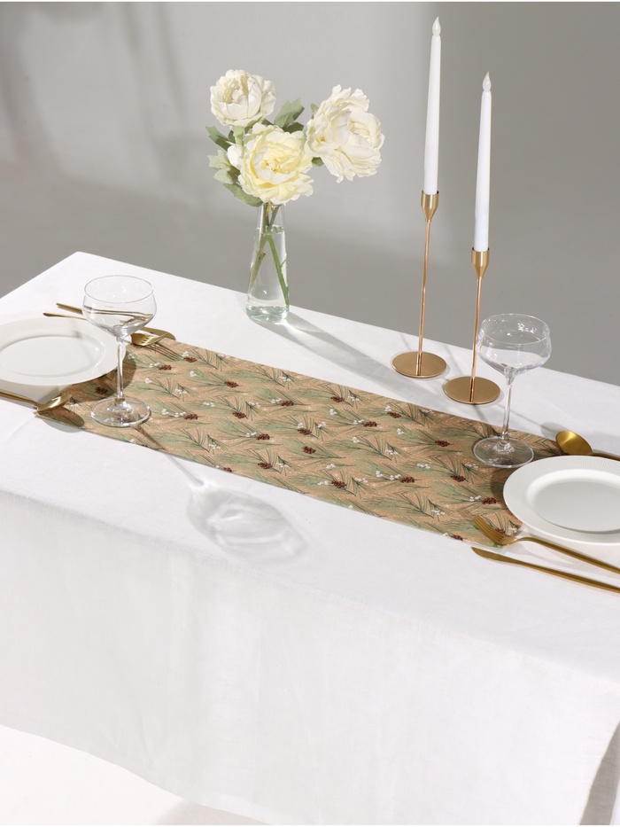 Дорожка на стол новогодняя Этель Spruce branches 30×70 см, 100% хлопок, саржа 190 г/м², бежевая