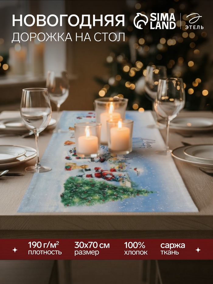 Дорожка на стол Этель «Рождественский вечер» 30×70 см, 100% хлопок, саржа 190 г/м², голубая