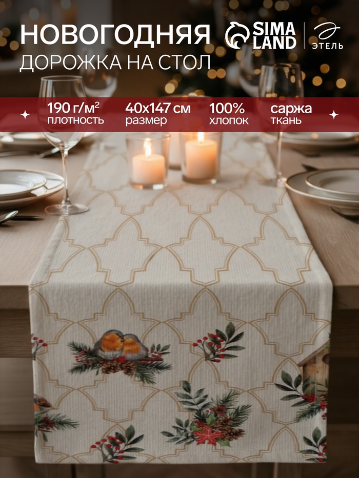 Дорожка на стол Этель Robin 40×147 см, 100% хлопок, саржа 190 г/м², белая