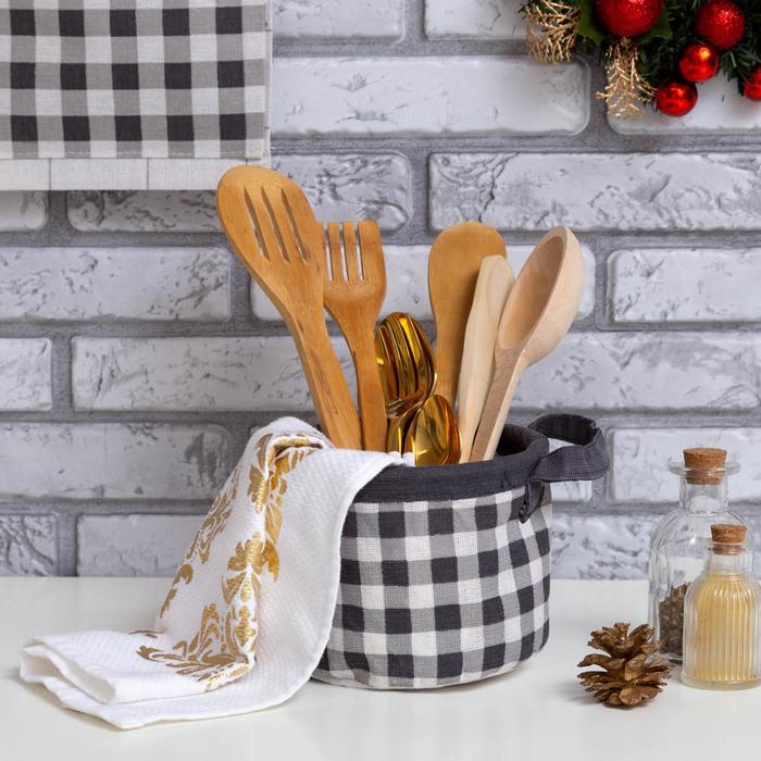 Эта текстильная корзинка станет практичным помощником в организации пространства дома или офиса. Ее компактные размеры позволяют разместить ее на полке, столе или в шкафу, создавая аккуратность и порядок. Стильный дизайн с классическим клетчатым узором делает ее универсальным элементом интерьера, который подойдет как для хранения повседневных мелочей, так и для праздничных мероприятий. Использование натуральных материалов гарантирует долговечность изделия и приятные тактильные ощущения при использовании. Такой аксессуар поможет вам легко поддерживать чистоту и порядок в любой ситуации, делая ваш дом более уютным и организованным."