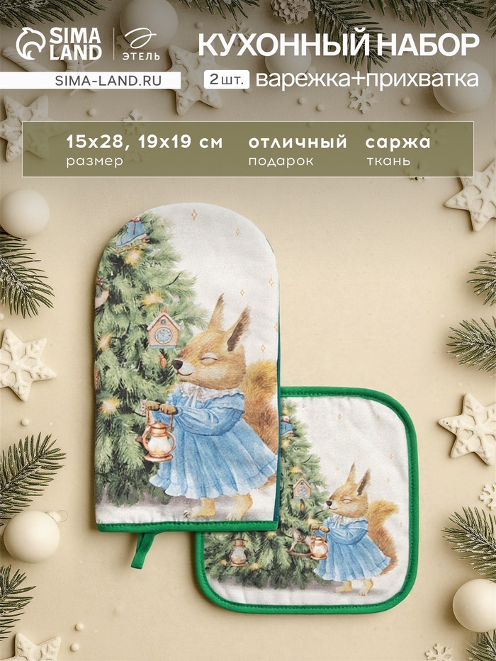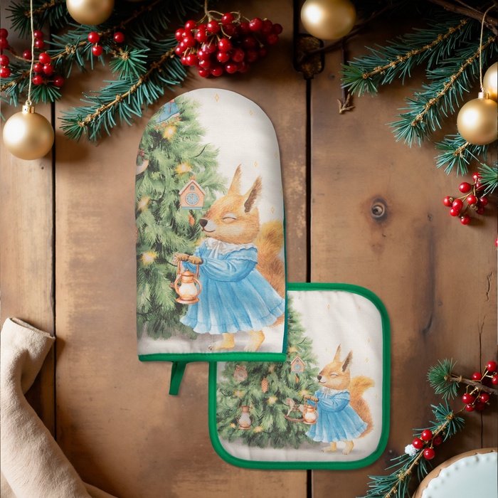 Набор кухонный «Сказочная ёлка» Варежка-прихватка новогодняя 15×28 см, прихватка 19×19 см,100%хл