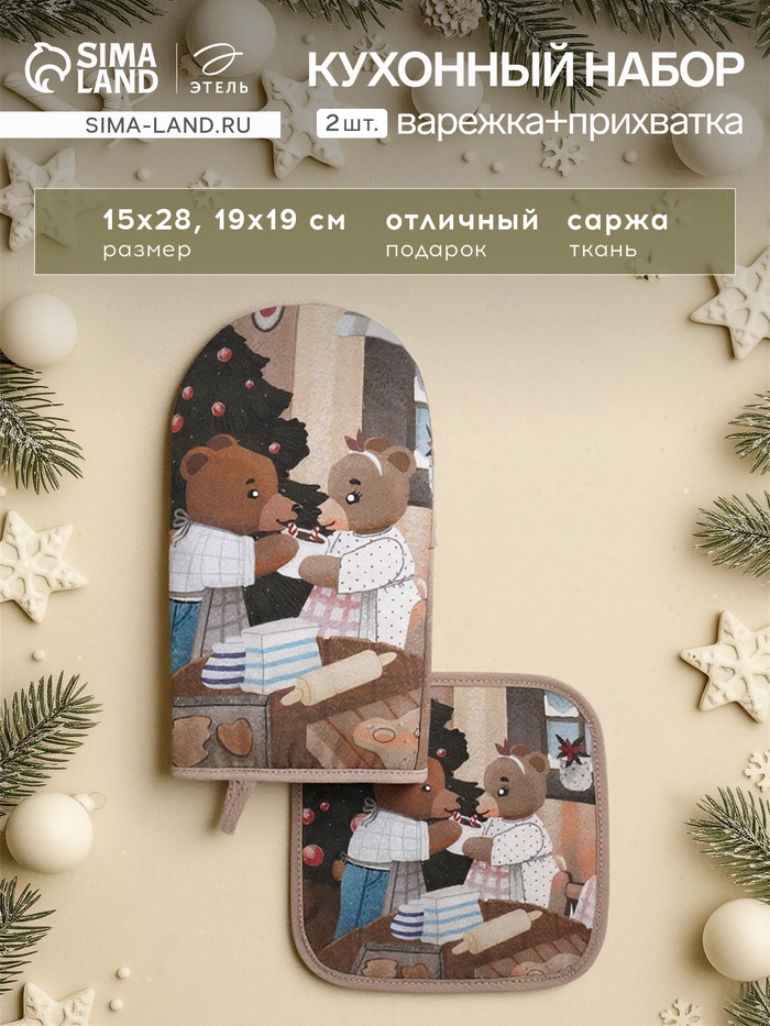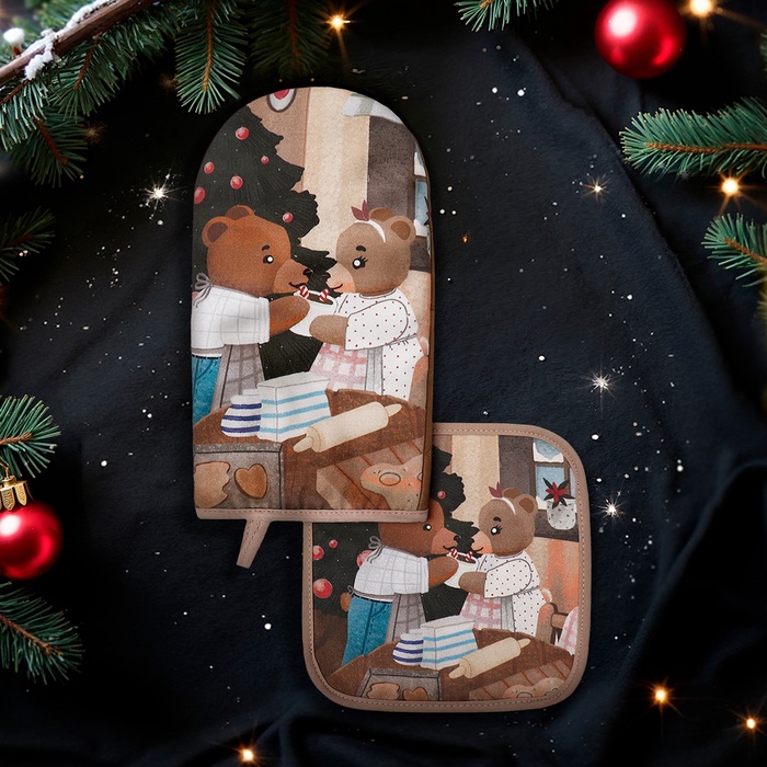 Набор подарочный «Этель» Bears, варежка 15×28 см, прихватка 19×19 см, хлопок 100%