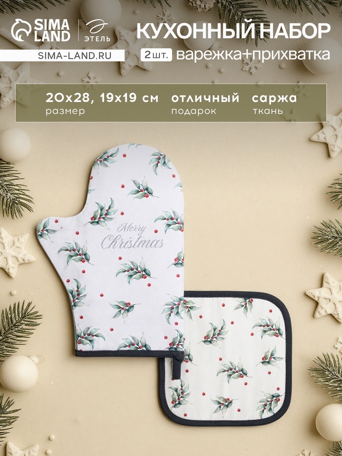Набор кухонный «Этель» Snow fun, варежка 20×28 см, прихватка 19×19 см,100% хлопок