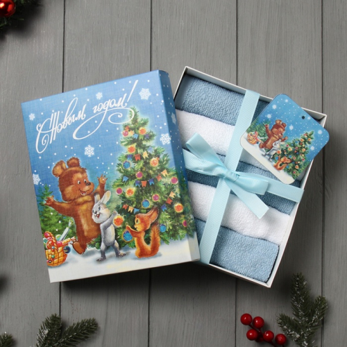 Набор махровых полотенец «Этель» Xmas, 30×30 см - 3 шт., хлопок 100%