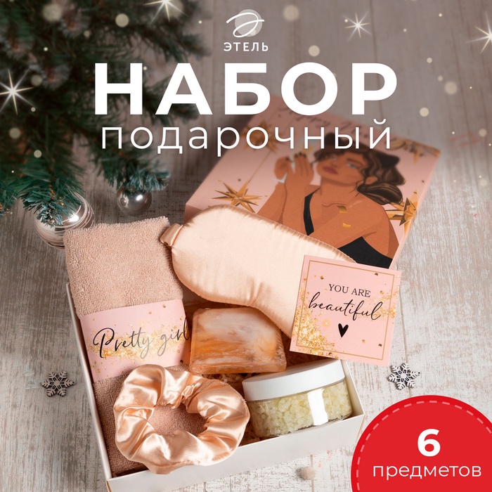 Составляющие набора: Мыло, Полотенце, Открытка, Резинка, Соль для ванны, Маска для сна