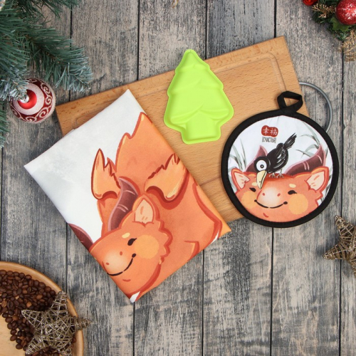 Составляющие набора: Форма для выпечки, Прихватка, Полотенце