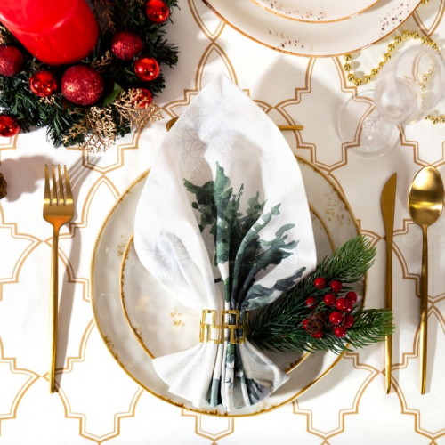 Салфетки с новогодним принтом для создания волшебной атмосферы праздника! Набор из четырёх текстильных аксессуаров со сказочным дизайном поможет оформить стол для рождественского ужина или семейного торжества. Плотная хлопковая основа с саржевым переплетением обеспечивает защиту поверхности и сохраняет внешний вид после многократного использования.