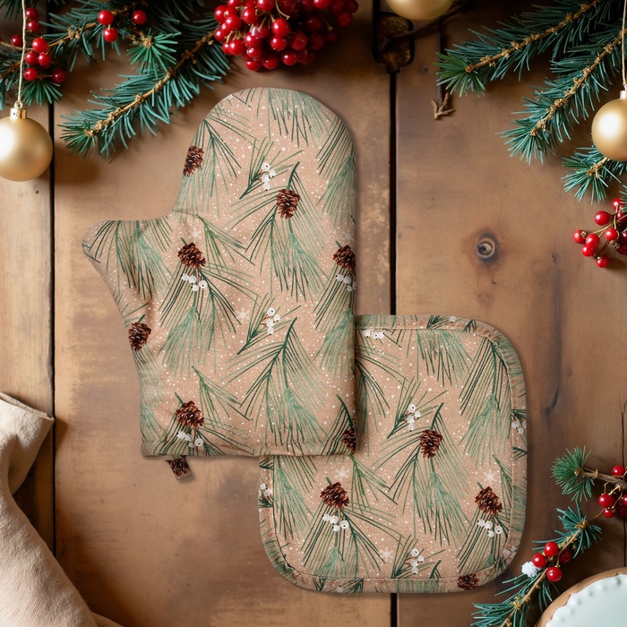 Набор Spruce branches Варежка-прихватка новогодняя 20×28 см, прихватка 19×19 см, 100% хл, ватин 250 г/м²