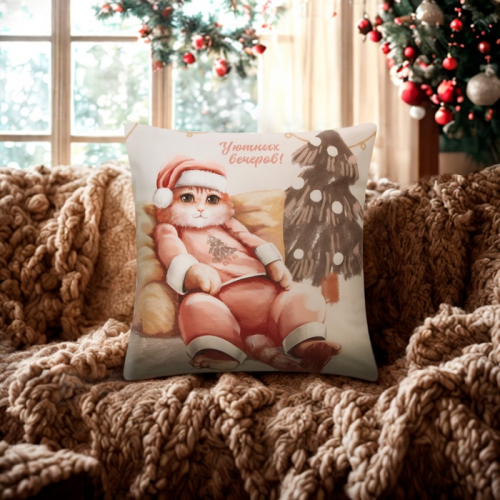 Этот декоративный чехол для подушки выполнен из бархатистого велюра с плотностью 160 г/м², что обеспечивает мягкое ощущение и долговечность. Размер 40×40 см подходит для стандартных подушек, а сочетание белого и розового цветов с нашивкой создает уютную атмосферу зимних праздников. Такой чехол станет стильным дополнением к новогоднему интерьеру, добавляя тепла и уюта в дом или офис.