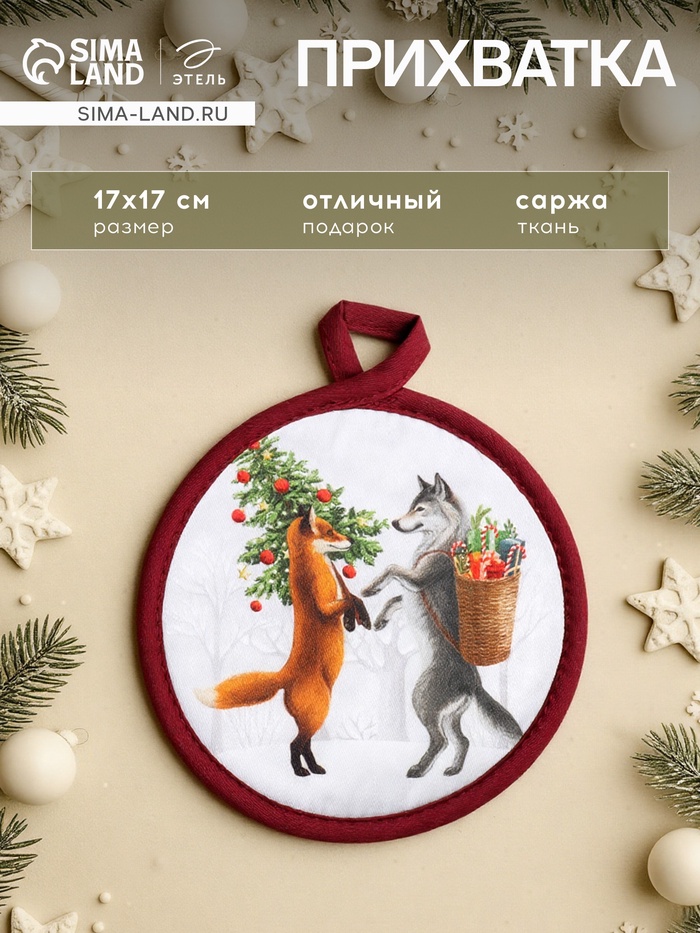 Прихватка Этель «Новый год» 17×17 см, 100% хлопок, саржа