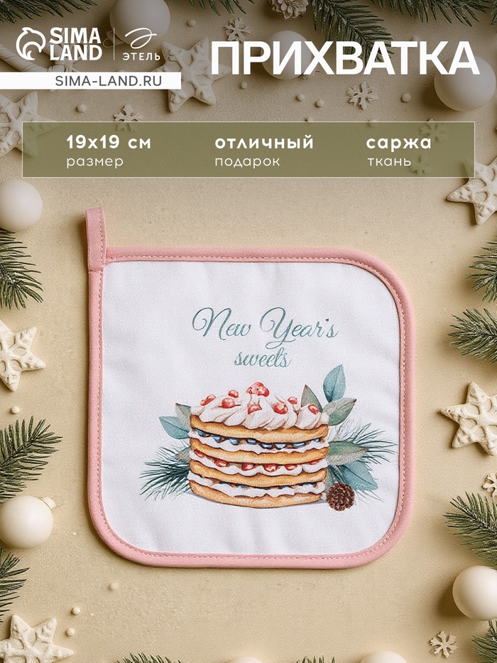 Прихватка «Этель» Sweet treat саржа, 19×19 см,100% хлопок, ватин 250 г/м²