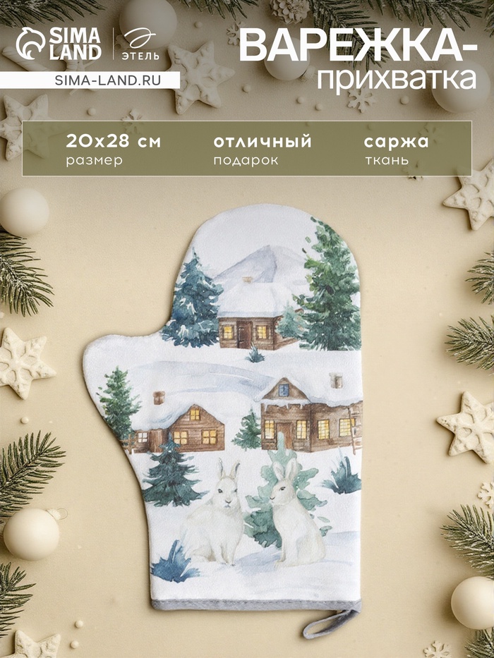 Варежка-прихватка новогодняя Forest animals 20×27 см, саржа, 100% х/л, ватин 250 г/м²
