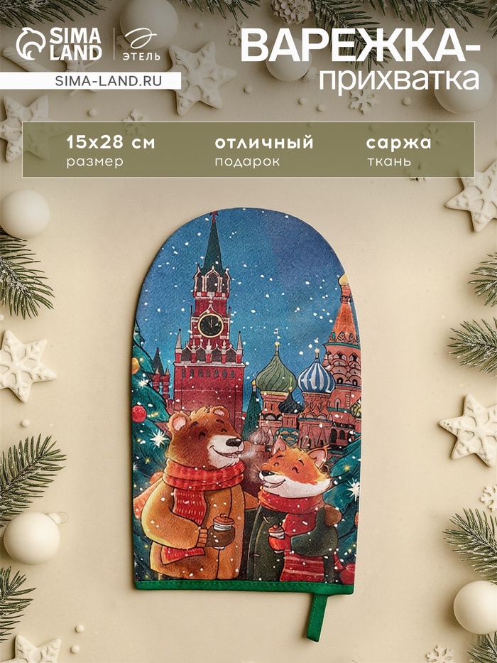 Варежка-прихватка новогодняя «Этель» Red Square 15×28 см, саржа, 100% хл, ватин 250 г/м²