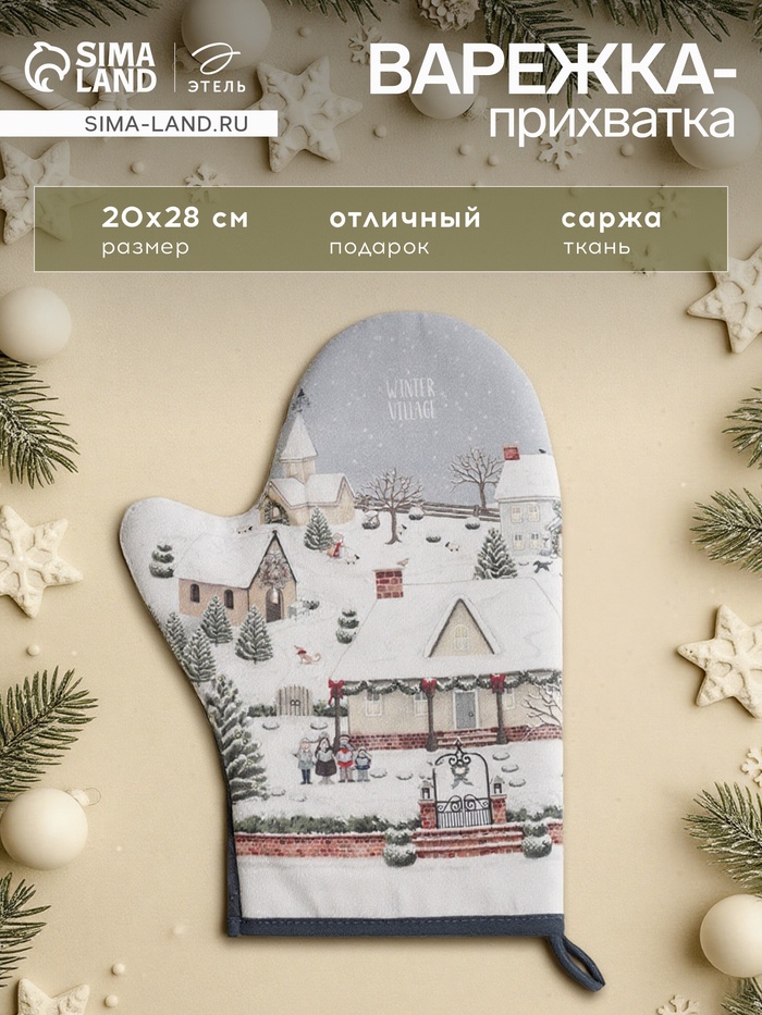 Варежка-прихватка «Этель» Winter village, 20×28 см, саржа, 100% хлопок, ватин 250 г/м²