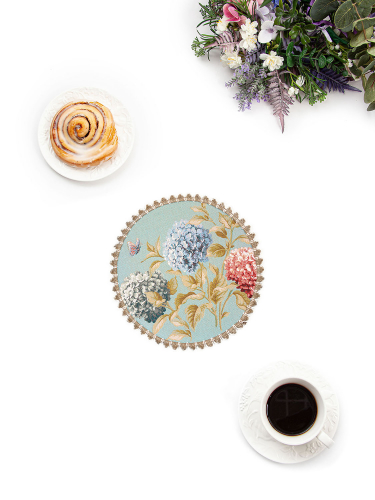 Гортензии и бабочки голубой фон Салфетка круг д42 см 2416709