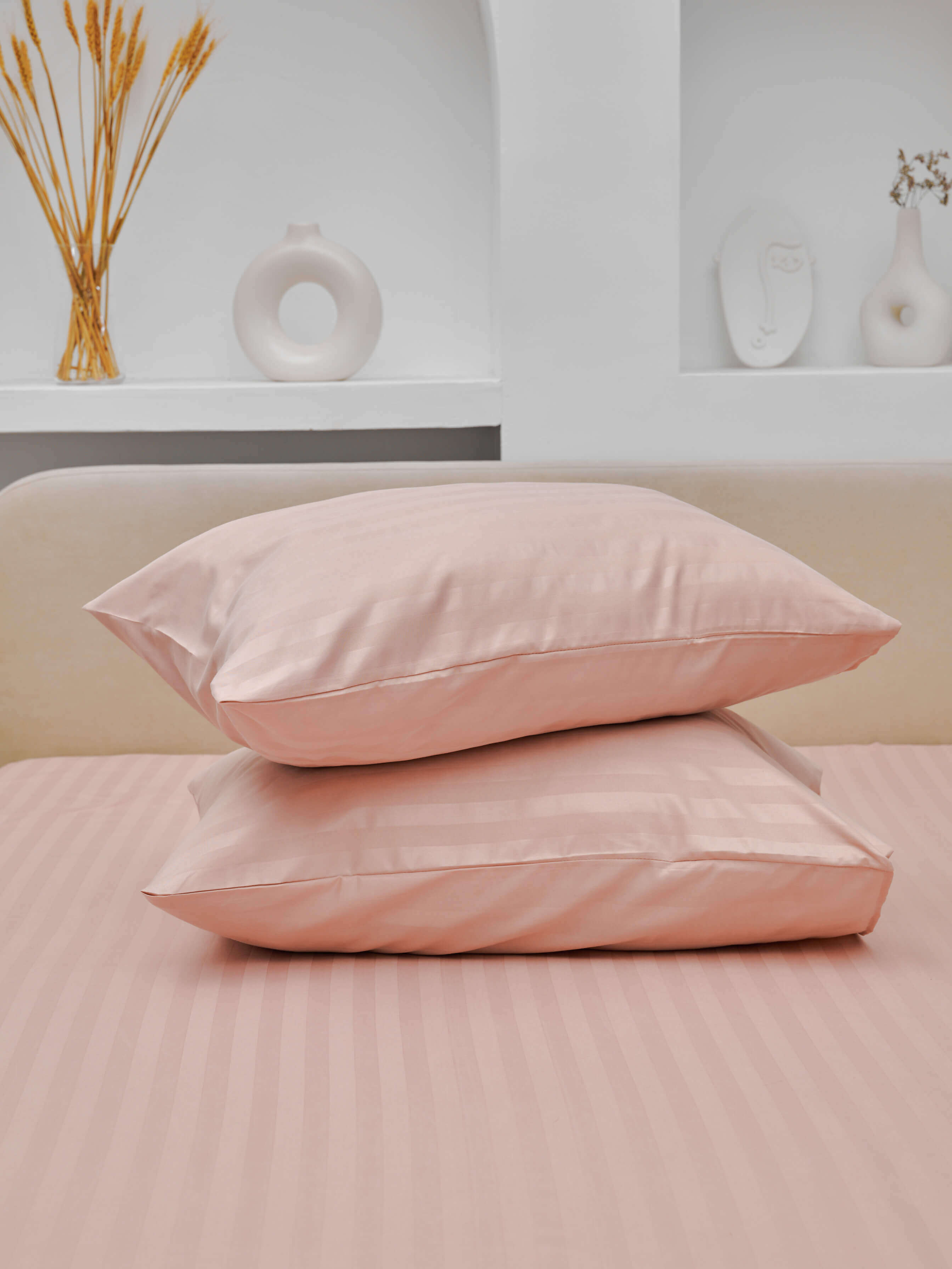 Комплект наволочек микрофибра страйп / Пудра