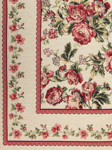Рисунок создается переплетением нитей различных цветов и фактуры. Состав ткани: хлопок ( дающий фактуру и приятную тактильность ) и синтетические нити ( придающие износостойкость ). Плотность гобелена 410 г на кв.метр.