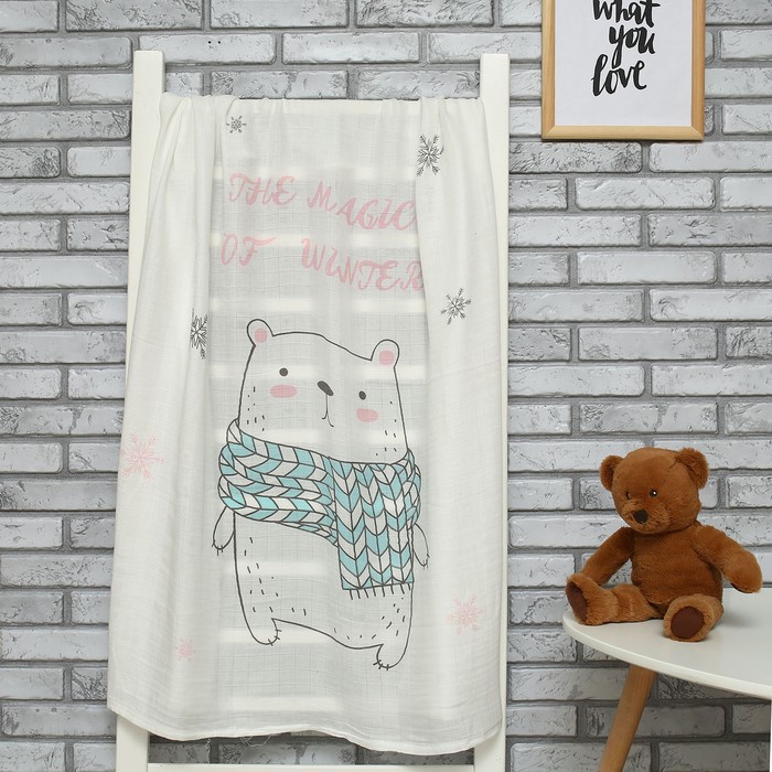 Пелёнка муслиновая Крошка Я «Зима» 120×110 см, двухслойная, 70% бамбук, 30% хлопок