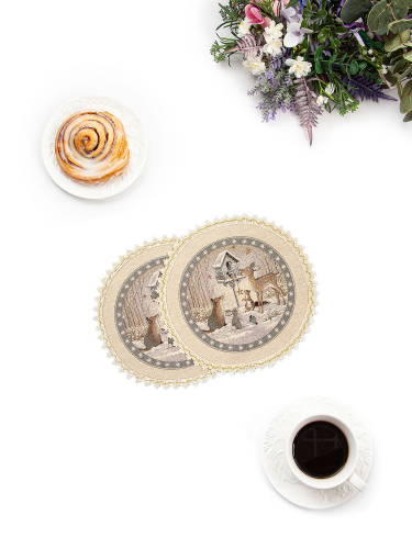Лесные друзья у кормушки Комплект салфеток 2шт д31 см золото 2104543