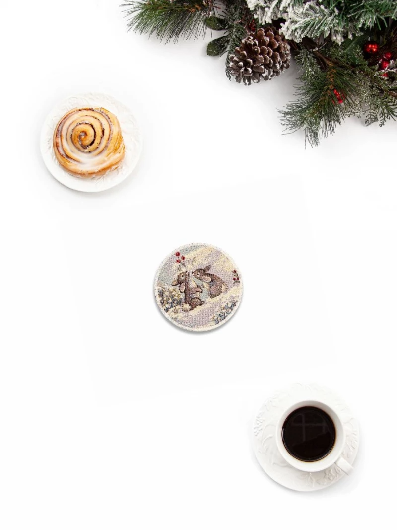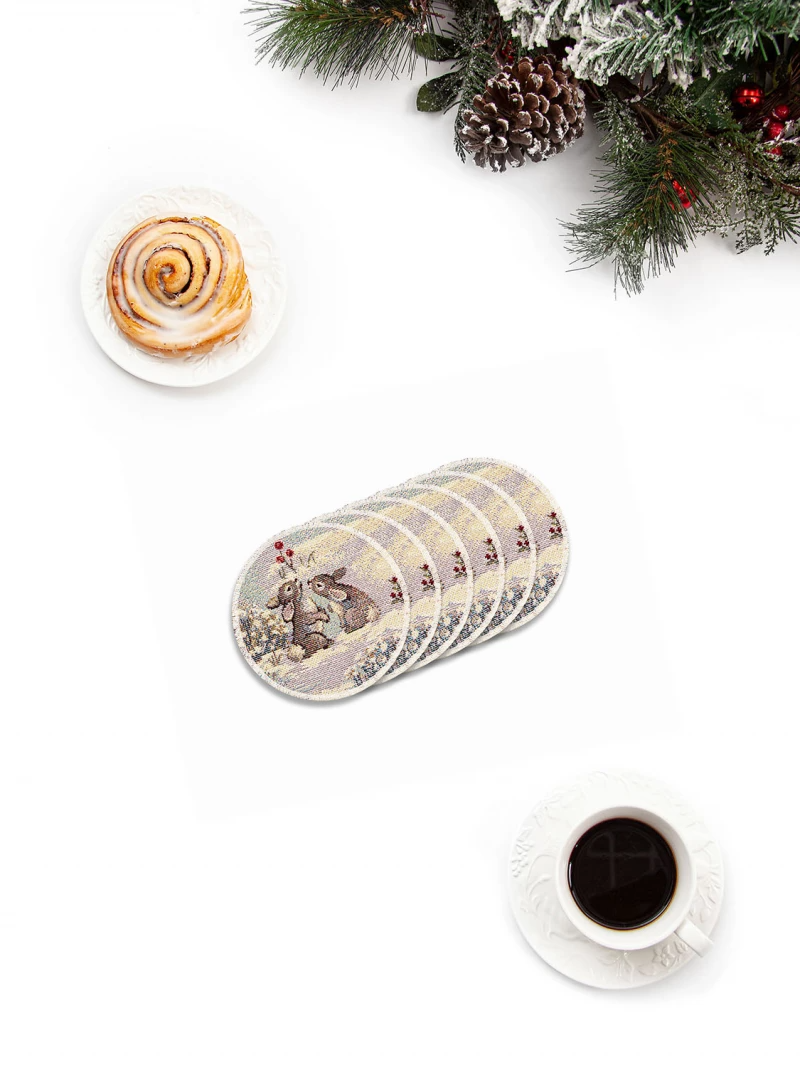 Лесные друзья у кормушки Комплект салфеток 6шт д11 см Б/Т серебро 2107415 Распродажа