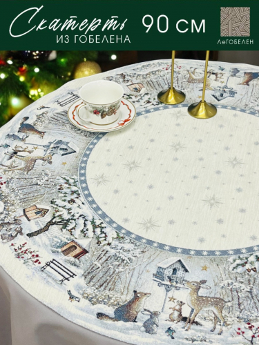 Лесные друзья у кормушки Скатерть 140х140 см шенилл 2310280 серебро