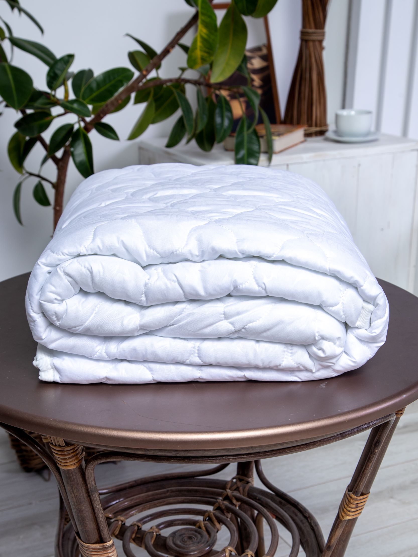 Наматрасник с наполнением из синтепона плотностью 150 гр/кв.м., окантован широкой тесьмой, по углам - резинка для фиксации на матрасе. Многоигольная стежка исключает смещение наполнителя внутри изделия, чехол устойчив к механическим воздействиям. Упаковка - тубус ПВХ с ручкой.