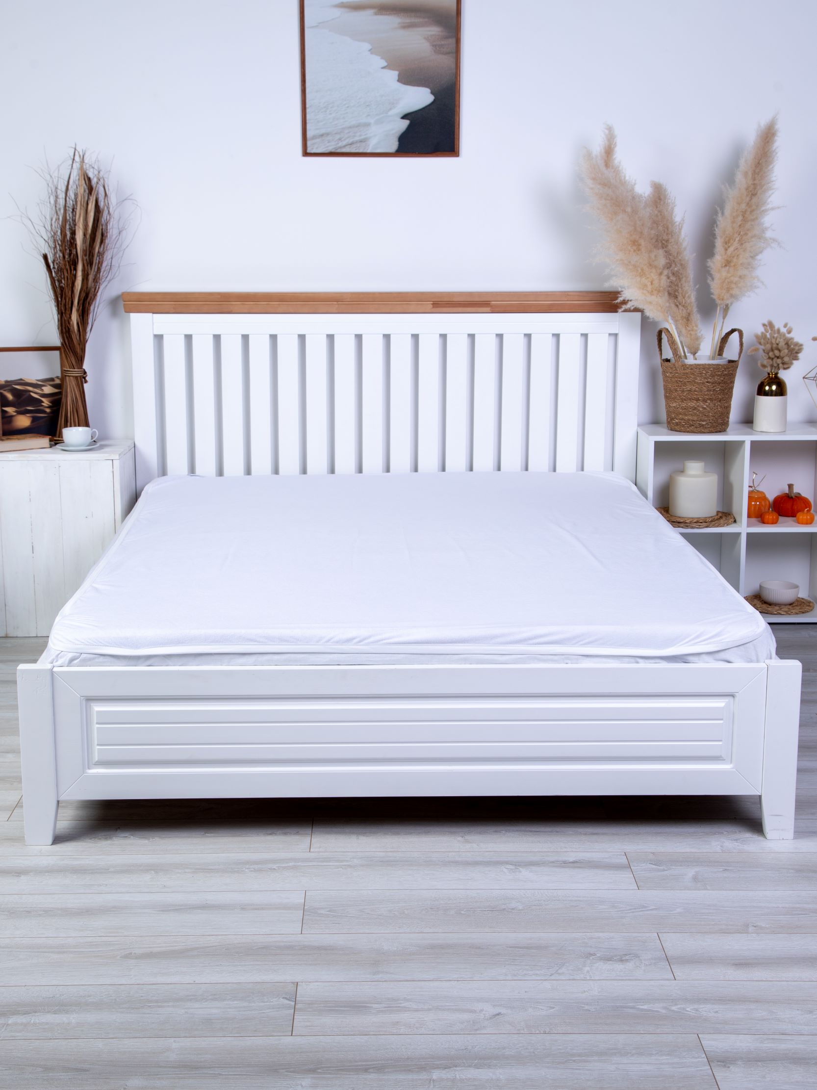 Наматрасник состоит из двух слоев: верхний из махрового полотна из 100% хлопка, нижний 100% влагонепроницаемое покрытие "Мембрана". По углам пришиты 4 резинки для крепления на матраце. Используя наматрасник, Вы защищаете матрац от промокания, загрязнения, а также увеличиваете срок его службы. Хлопковый слой исключает неприятные ощущения во время его эксплуатации, простынь не будет скользить. Чехол можно стирать, легко сушить, имеет длительный срок эксплуатации.