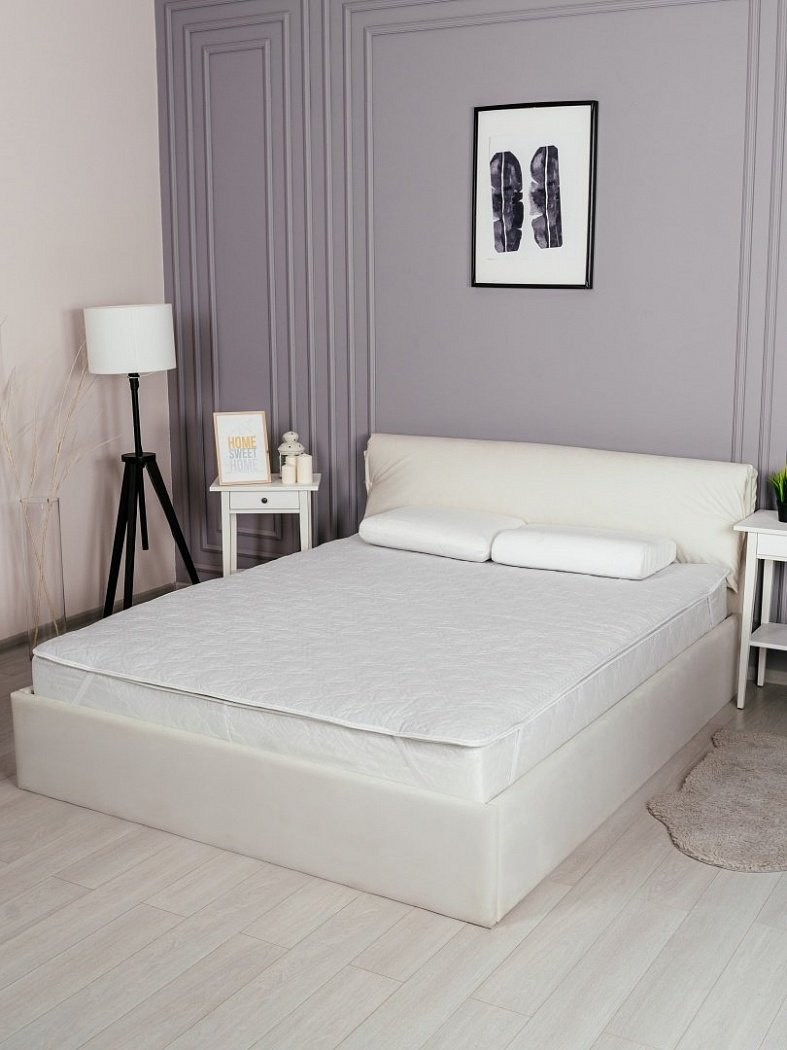 Как на фото Топпер Soft состоит из слоя ортопены толщиной 2 см и чехла на основе стеганого поликоттона. Ортопена – экологически безопасный, не токсичный синтетический материал с ячеистой структурой. Мягкая и упругая ортопена хорошо пропускает воздух, благодаря чему наматрасник не накапливает посторонние запахи. Это долговечный наполнитель с прекрасными антибактериальными свойствами. Топпер Soft продлевает срок эксплуатации матраса , прекрасно защищает от грязи и пыли. Его также можно использовать в качестве топпера – тонкого матраса, который будет смягчать поверхность основного, более жесткого. Наматрасник Soft сделает ваше спальное место более комфортным. Стеганый чехол из поликоттона обладает рядом преимуществ: прочность и долговечность, устойчивость краски, меньше мнётся, проще стирается. Наматрасник крепится на 4 резинки по углам матраса.