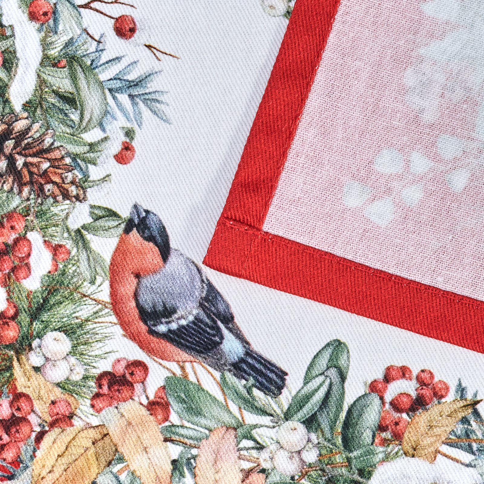 НАБОР САЛФЕТОК ИЗ 2-Х ШТ "МОРОЗКО.СНЕГИРИ",40Х40СМ, 100% ХЛОПОК,КРАСНЫЙ,ТВИЛ,