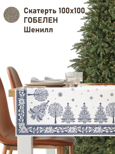 Нидерланды голубой Салфетка 100х100 см Шенилл серебро 2518963