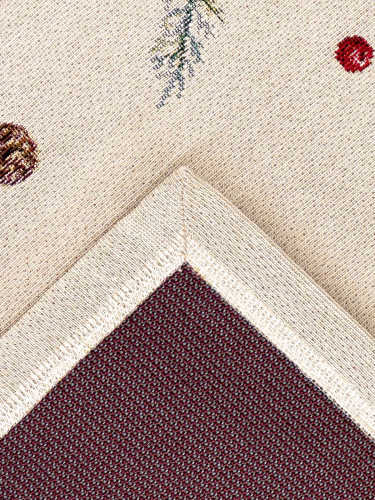 Рисунок создается переплетением нитей различных цветов и фактуры. Состав ткани: хлопок ( дающий фактуру и приятную тактильность ) и синтетические нити ( придающие износостойкость ). Плотность гобелена 410 г на кв.метр.