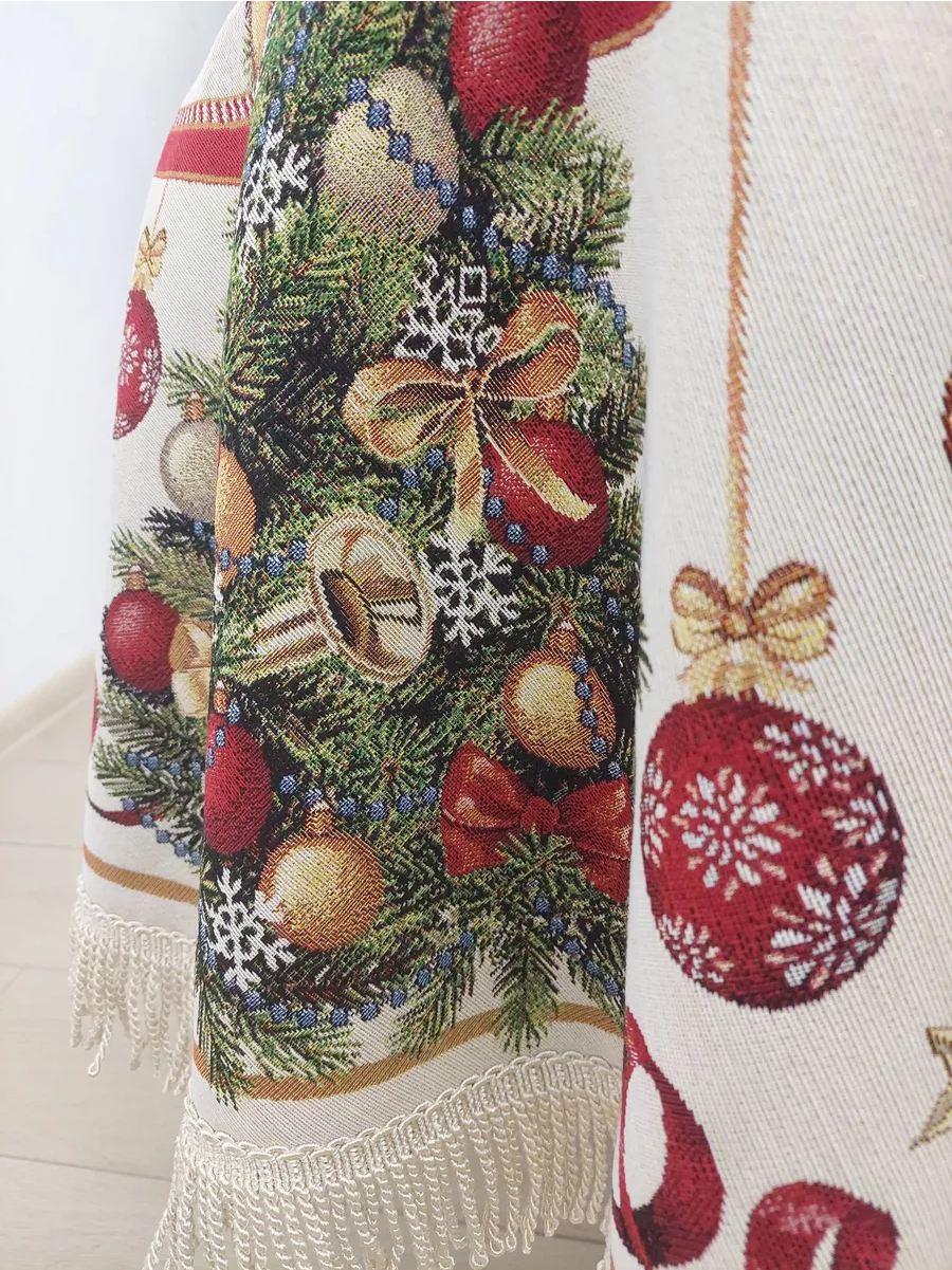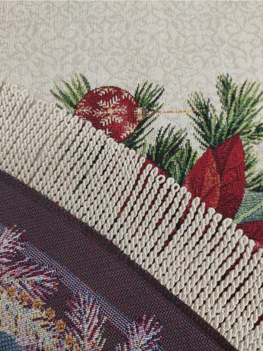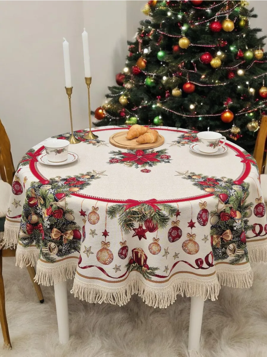 Новогодний пир Скатерть круг д140 см Бахрома 2414225 New