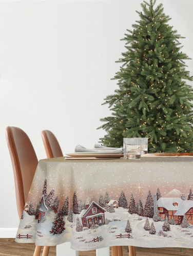Новогодний вечер бежевый фон Скатерть Овал 160х300 см серебро 2518955 New