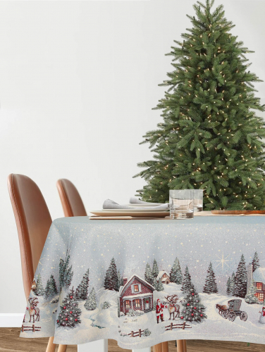 Новогодний вечер голубой фон Снежинки Скатерть ОВАЛ 160х300 см 2415115
