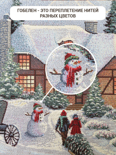 Рисунок создается переплетением нитей различных цветов и фактуры. Состав ткани: хлопок ( дающий фактуру и приятную тактильность ) и синтетические нити ( придающие износостойкость ). Плотность гобелена 410 г на кв.метр.
