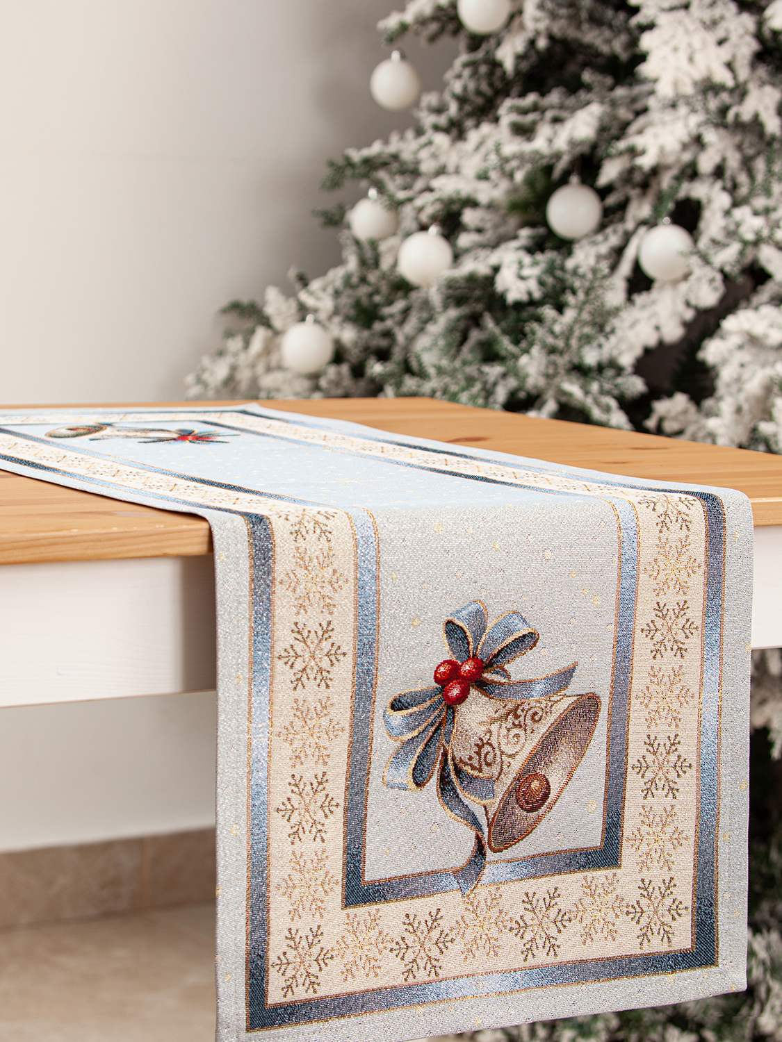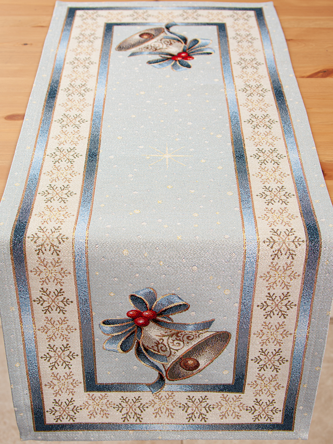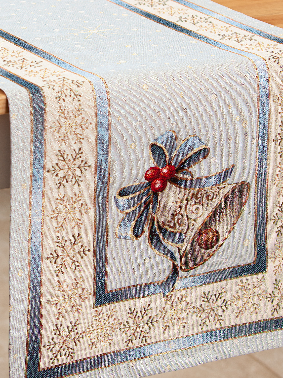 Новогодний вечер Колокольчик голубой фон Салфетка 44х140 см 2101068