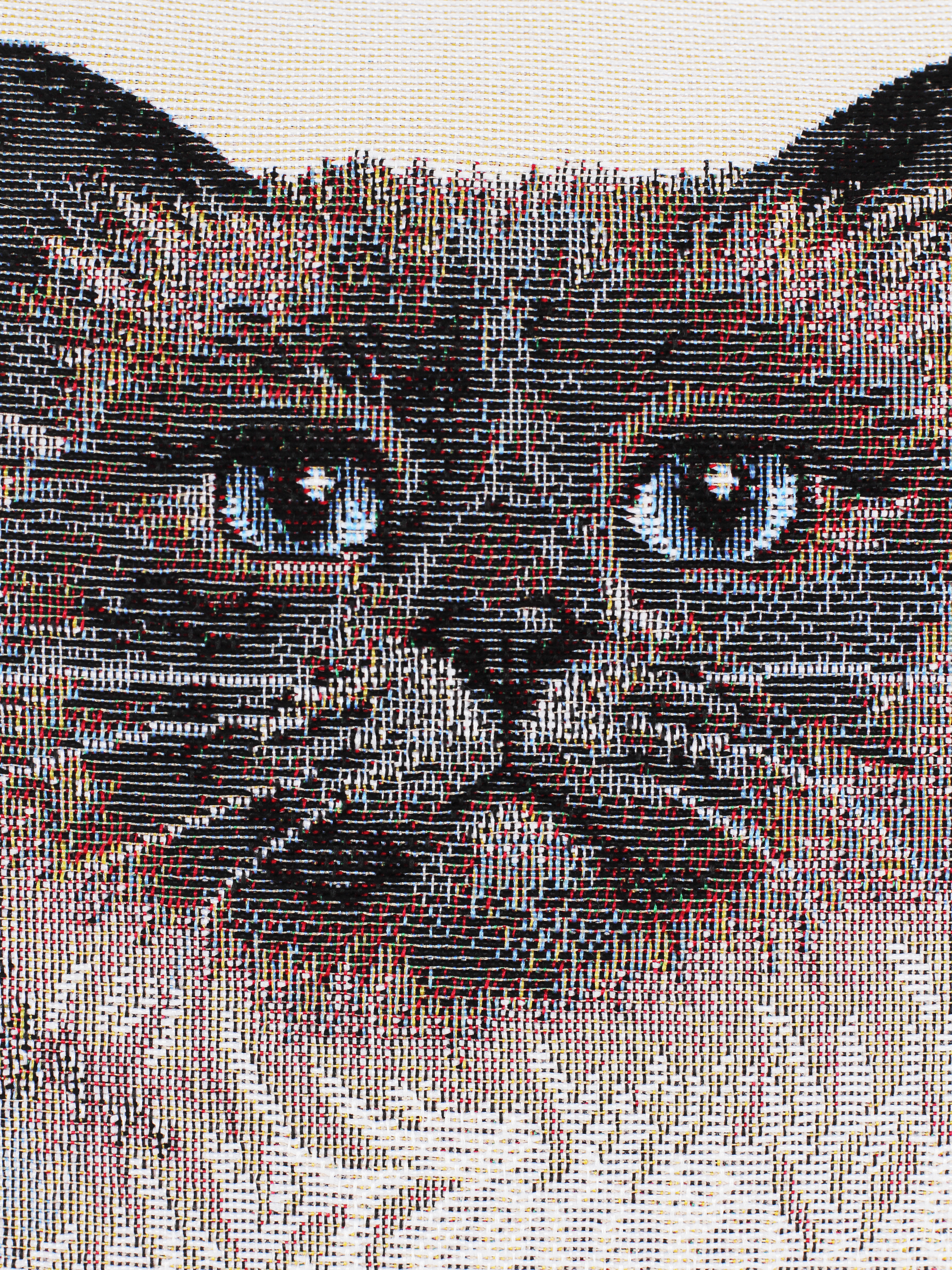 Рисунок создается переплетением нитей различных цветов и фактуры. Состав ткани: хлопок ( дающий фактуру и приятную тактильность ) и синтетические нити ( придающие износостойкость ). Плотность гобелена 410 г на кв.метр.