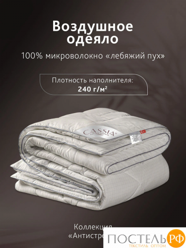 Всесезонное стеганое одеяло Антистресс от бренда CASSIA - ваш ключ к уюту в любое время года. Чехол одеяла выполнен из 100% микрофибры с карбоновой нитью, а наполнитель 100% микроволокно Лебяжий пух Ultra Soft с плотностью 240 г/м2.