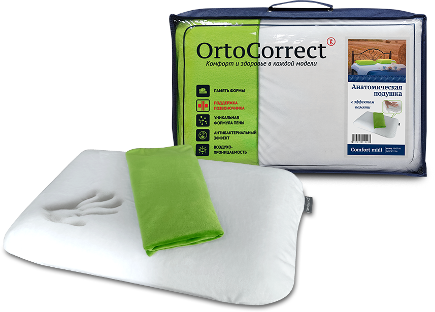 Форма подушки отлично подходит для сна на спине, на боку, а также на животе.