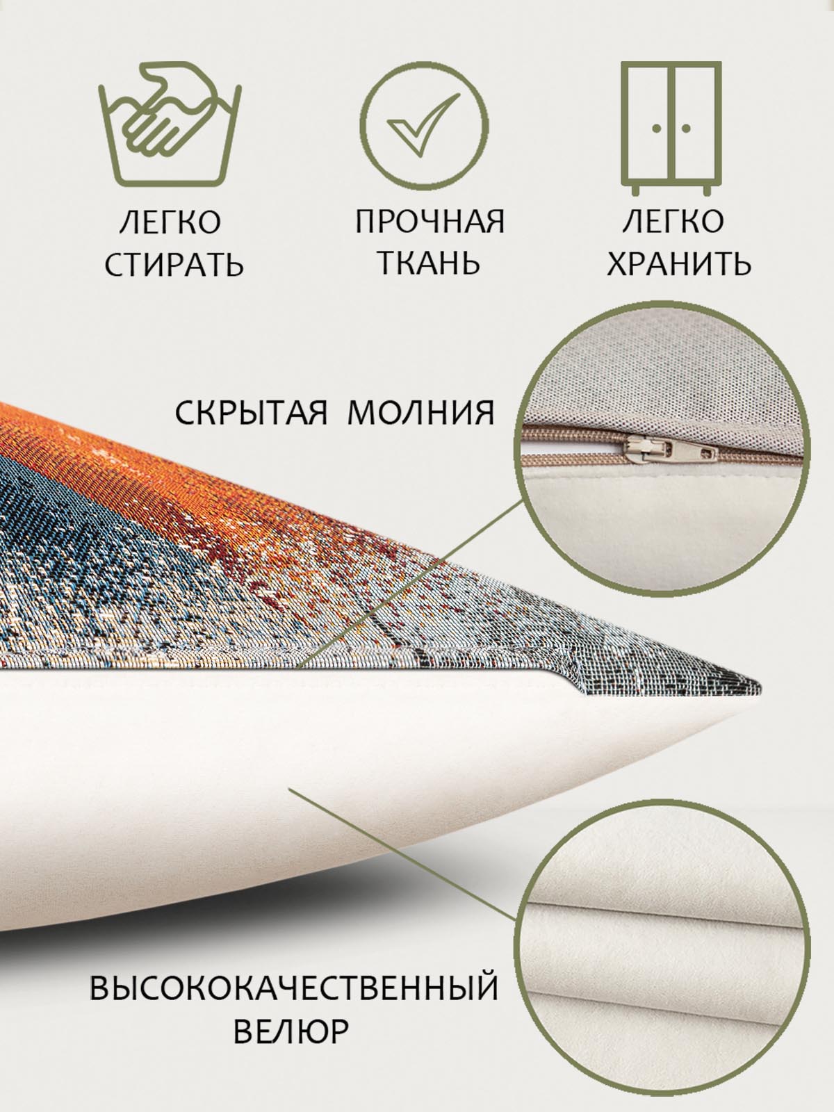Рисунок создается переплетением нитей различных цветов и фактуры. Состав ткани: хлопок ( дающий фактуру и приятную тактильность ) и синтетические нити ( придающие износостойкость ). Плотность гобелена 410 г на кв.метр.